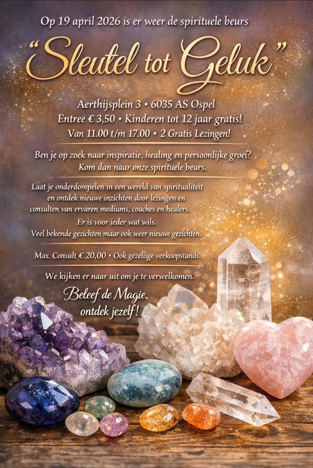 Op zondag 19 april 2026 is het alweer de vierde keer dat de spirituele beurs "Sleutel tot geluk" in Ospel zal worden georganiseerd.